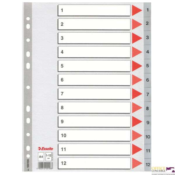 Przekładki plastikowe szare PP A4 1-31 100108 numeryczne ESSELTEPrzekładkiart. dostępny 14szczegółyCena widoczna po zalogowaniuPrzekładki plastikowe szare PP A4 1-31 100108 numeryczne ESSELTEart. dostępny 14Zobacz więcej