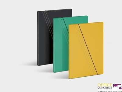 _wykonana z tektury _o gramaturze 700 g/m2__format A4__szerokość do 20mm__jednostronnie barwiona, powlekana folią polipropylenową__gumka w kolorze czarnym