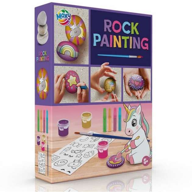 Zestaw do malowania kamieni JEDNOROŻEC (3x Kamień, 3x Farbka, 3x Farbka w tubce, 1x Pędzelek, 1x arkusz z szablonami) 200075 MOXY